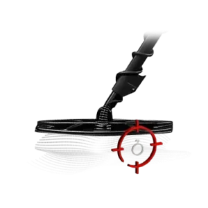 Bobina estándar de 10″ con cable, resistente al agua hasta 1 m (3,3 pies). Ideal para terrenos limpios y localización precisa de objetivos en la detección diaria.